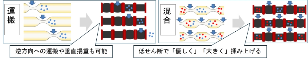 腸の蠕動運動を模倣した高粘度・固液混合流体の混合搬送装置
