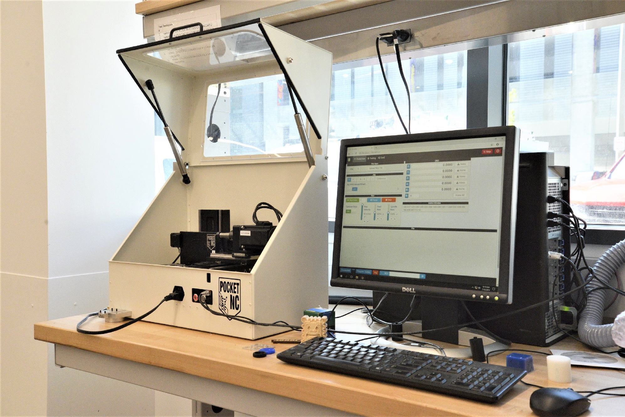 ●卓上5軸加工機 PocketNCは卓上サイズながら本格的な5軸加工が可能。AC100Vで稼働でき、場所を選びません。樹脂や軽金属の社内試作に最適です。毎日加工実演を行います。