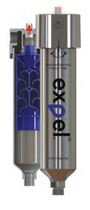 Original AVG社の高機能エアフィルター『EXPEL®』は、圧縮空気に含まれる水、オイルエマルジョン、1μmまでの個体微粒子の99.999%を除去する画期的なエアフィルター。特許取得のユニークな内部構造で、「10年間メンテナンスフリー」に対応します。