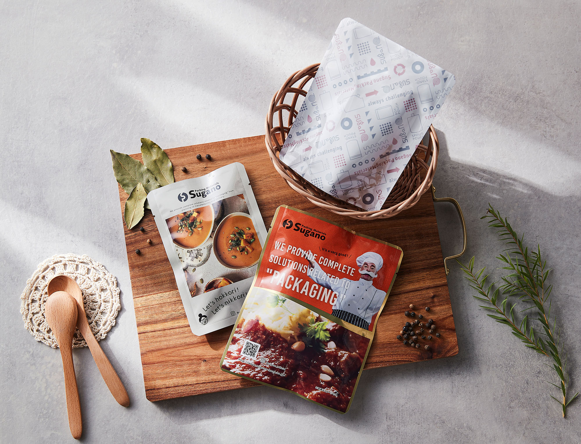 Suganoでは、企画・デザインからフィルムの製造、製袋、印刷、物流まで、