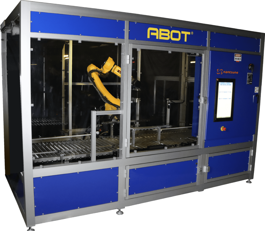 信頼性の高いFANUC社製6軸ロボットアームと、高精度の画像解析システムを中心に構築された、次世代型の段ボール箱自動開梱機です。